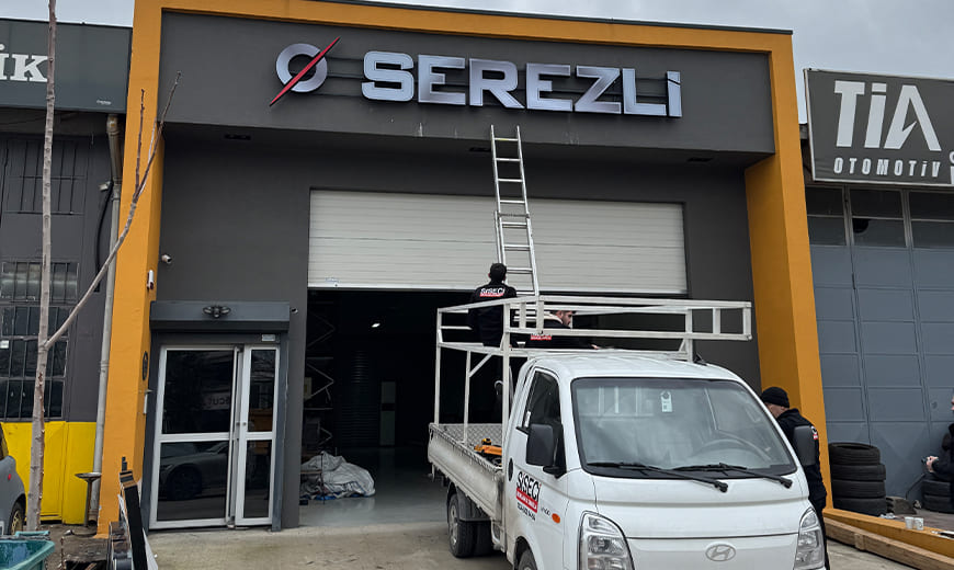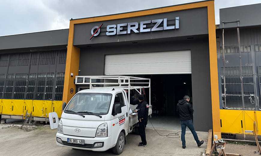 Bursa Küçük Sanayi Bölgesi’nde faaliyet gösteren Serezli firması için hazırlanan cephe tabela uygulaması, Şişeci Reklam tarafından tasarlanmış, üretilmiş ve montajı gerçekleştirilmiştir. İşletmenin marka kimliğini ön plana çıkarmak amacıyla modern ve dikkat çekici bir ışıklı kutu harf tabela sistemi uygulanmıştır.
