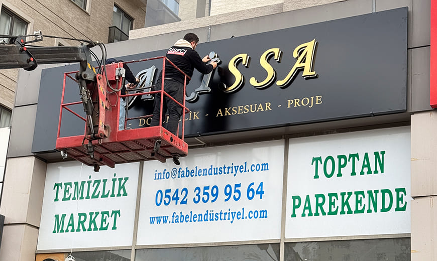 Hazırlanan tabela çalışması işletmenin kurumsal kimliğini güçlü bir şekilde yansıtarak markanın uzaktan kolaylıkla fark edilmesini sağlamaktadır.