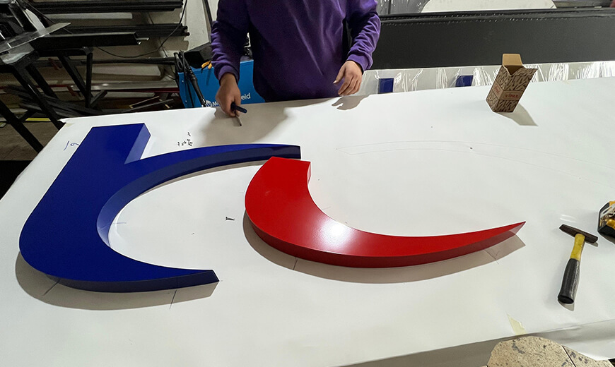 Kutu harf tabela sistemi, işletmenin logosunu ve marka adını üç boyutlu bir görünümle ön plana çıkararak binanın cephe görünürlüğünü artırmaktadır.
