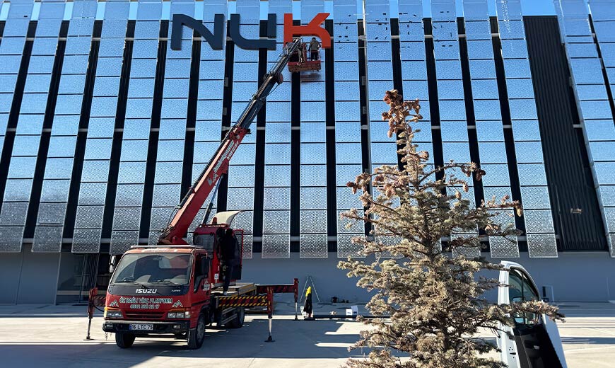 Bursa’nın önde gelen sanayi kuruluşlarından Nuri Körüstan firması için TEKNOSAB Sanayi Bölgesi’nde açılan yeni fabrika binasına yönelik cephe tabela uygulaması Şişeci Reklam tarafından tasarlanmış, üretilmiş ve montajı gerçekleştirilmiştir. Fabrika cephesinde güçlü bir marka görünürlüğü sağlamak amacıyla büyük ölçekli kutu harf tabela sistemi tercih edilmiştir.